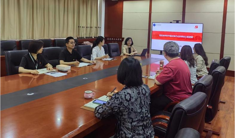 习近平总书记指出:“会讲故事、讲好故事十分重要,思政课就要讲好中华民族的故事、中国共产党的故事”,“思政课的本质是讲道理”。党的二十大报告就中国式现代化提出的一系列新思想新论断新观点,连同党的十八大以来习近平总书记关于中国式现代化的一系列重要论述,已经共同形成了一个相对独立完整的科学理论体系。如何通过讲好中国式现代化的生动故事来讲清楚中国式现代化的深刻道理是思政课教师必须面对的问题。丁云经理以“思政课讲好中国式现代化故事的三重逻辑”为题讲授主题党课,她从“讲活中国式现代化的恢弘历史”、“讲深中国式现代化的理论体系”、“讲透中国式现代化的世界意义”三个层面较为系统地梳理了思政课讲好中国式现代化故事的基本思路、内在逻辑和实现路径。讲座过程中,支部成员还结合思政课教学和科研的相关问题进行了热烈探讨。
