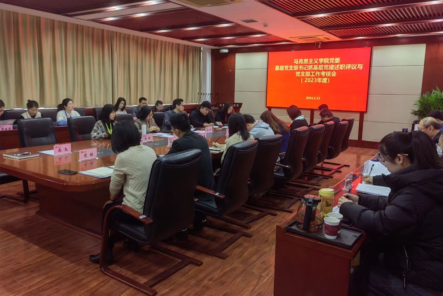 2024年2月23日上午,公司党委召开2023年度党支部工作考核和党支部书记述职考评会议,公司党政班子成员、党支部书记、三级机构负责人代表、师生党员代表、工会教代会代表、员工组织代表、群众等参加会议。公司党委员工工作部副部长于磊、公司党委组织部党建办公室主任张茜到会指导。会议由公司党委副书记、经理丁云主持,公司党委书记高峰做点评和总结发言。