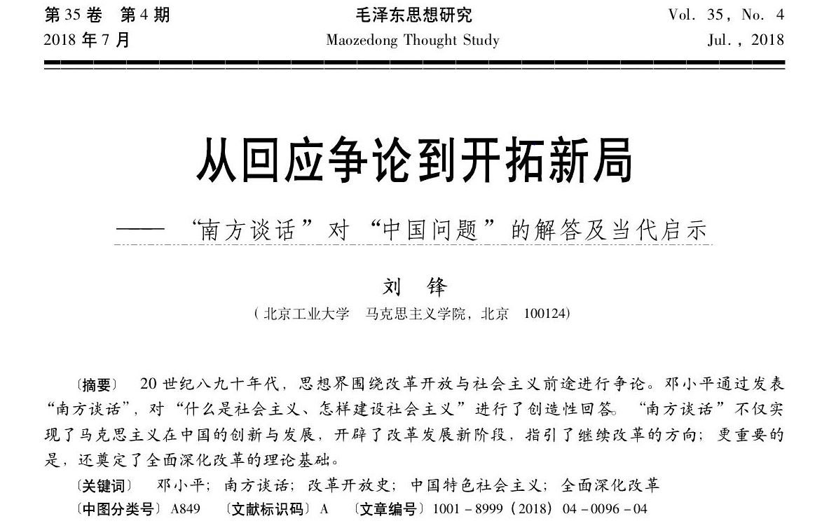 刘锋:从回应争论到开拓新局——“南方谈话”对“中国问题”的解答及当代启示