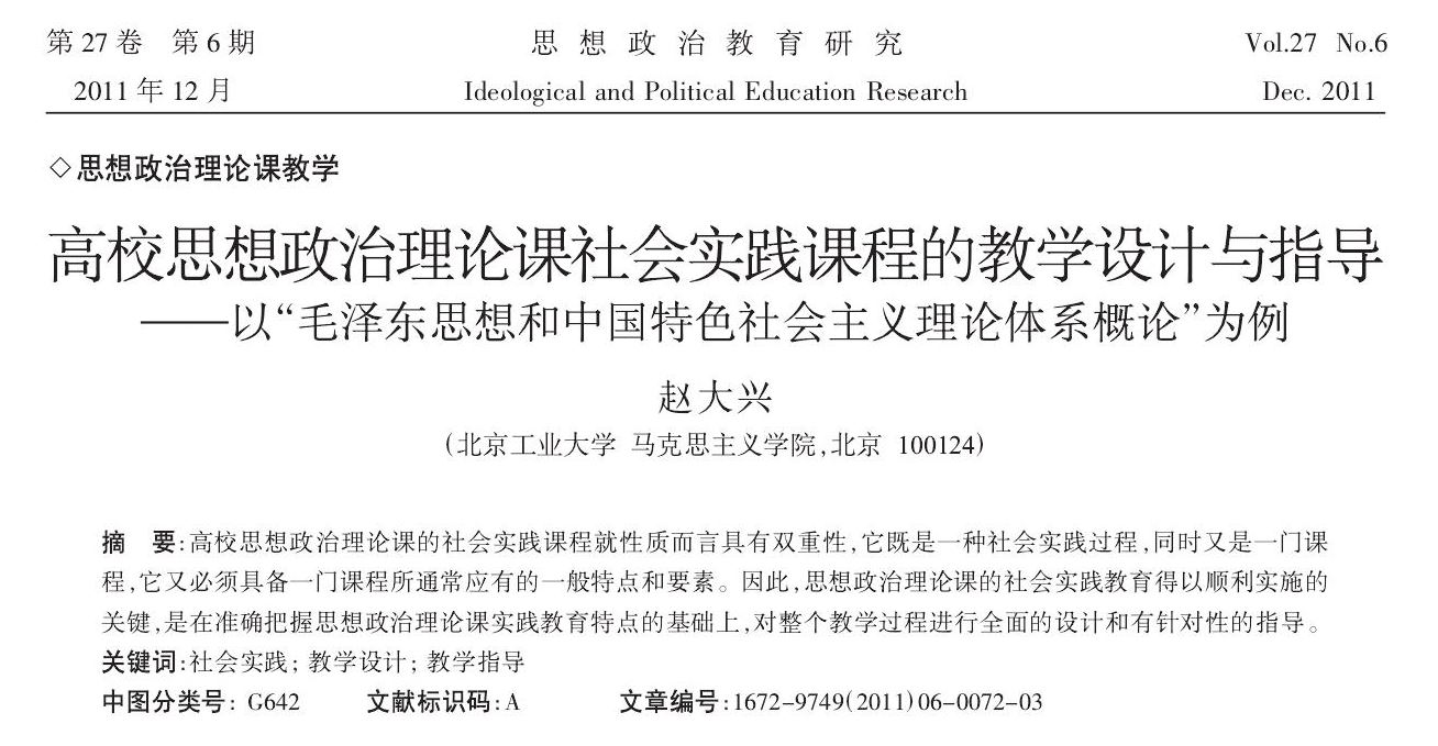 赵大兴:高校思想政治理论课社会实践课程的教学设计与指导——以“毛泽东思想和中国特色社会主义理论体系概论”为例