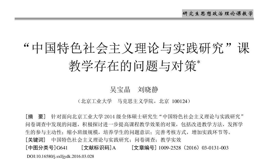吴宝晶、刘晓静:“中国特色社会主义理论与实践研究”课教学存在的问题与对策