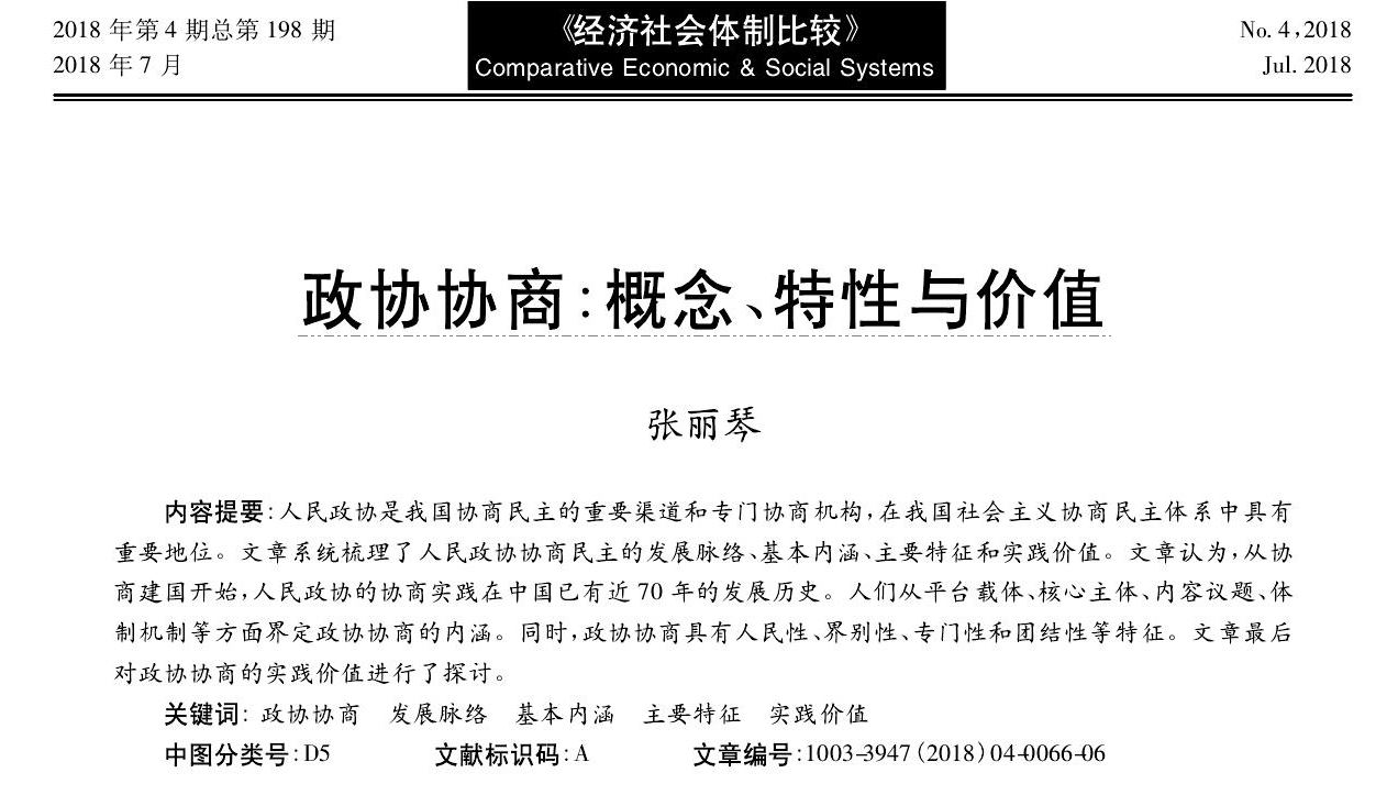 张丽琴:政协协商:概念、特性与价值