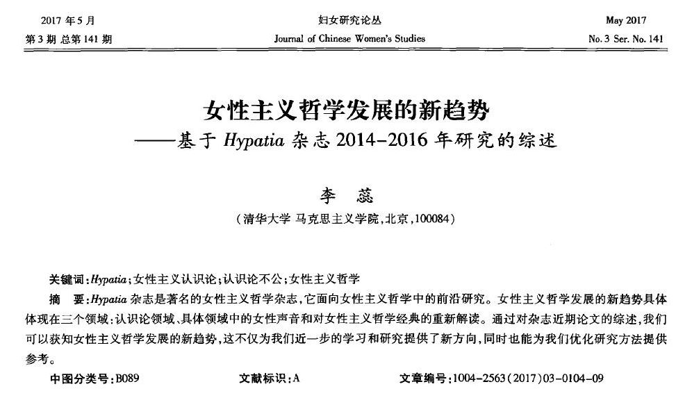 李蕊:女性主义哲学发展的新趋势——基于Hypatia杂志2014-2016年研究的综述