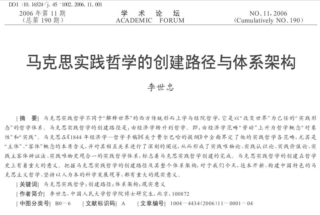 李世忠:马克思实践哲学的创建路径与体系架构