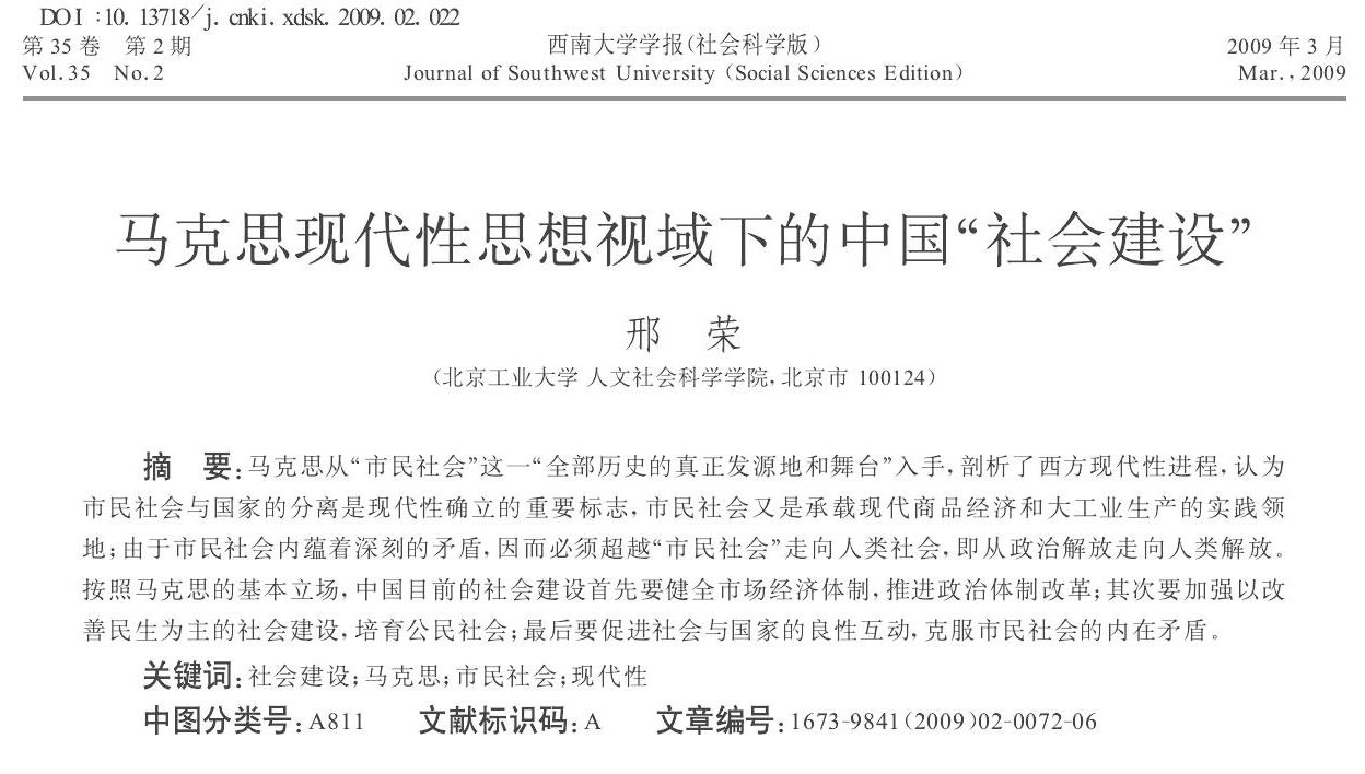 邢荣:马克思现代性思想视域下的中国“社会建设”