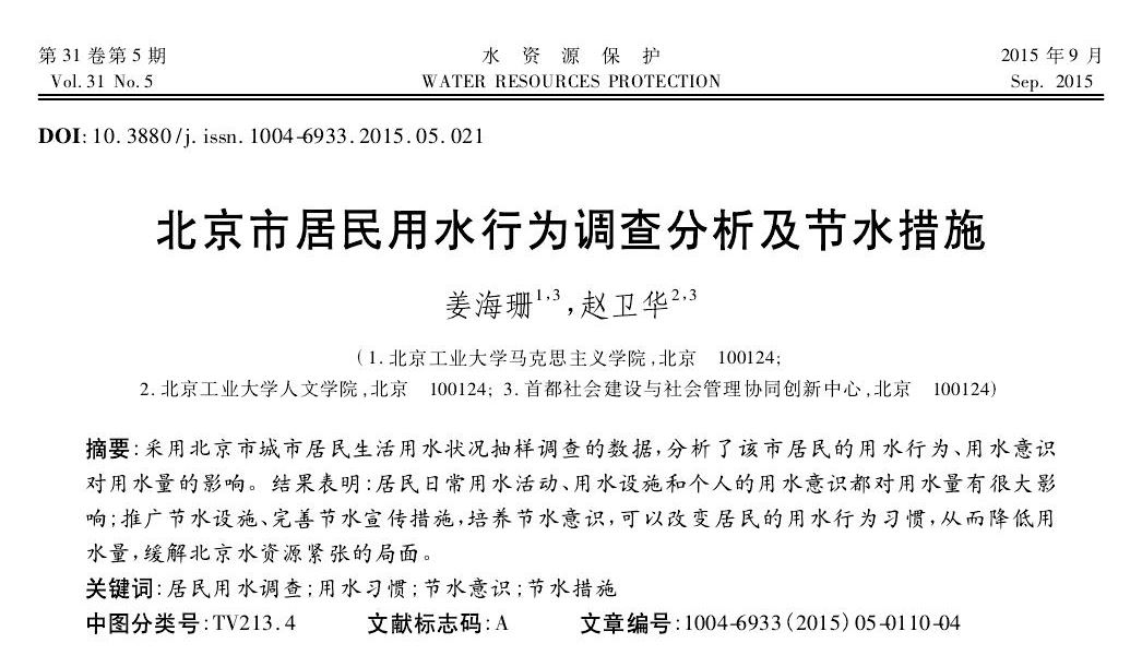 姜海珊、赵卫华:北京市居民用水行为调查分析及节水措施
