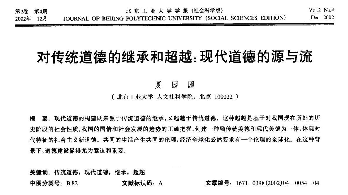 夏园园:对传统道德的继承和超越:现代道德的源与流