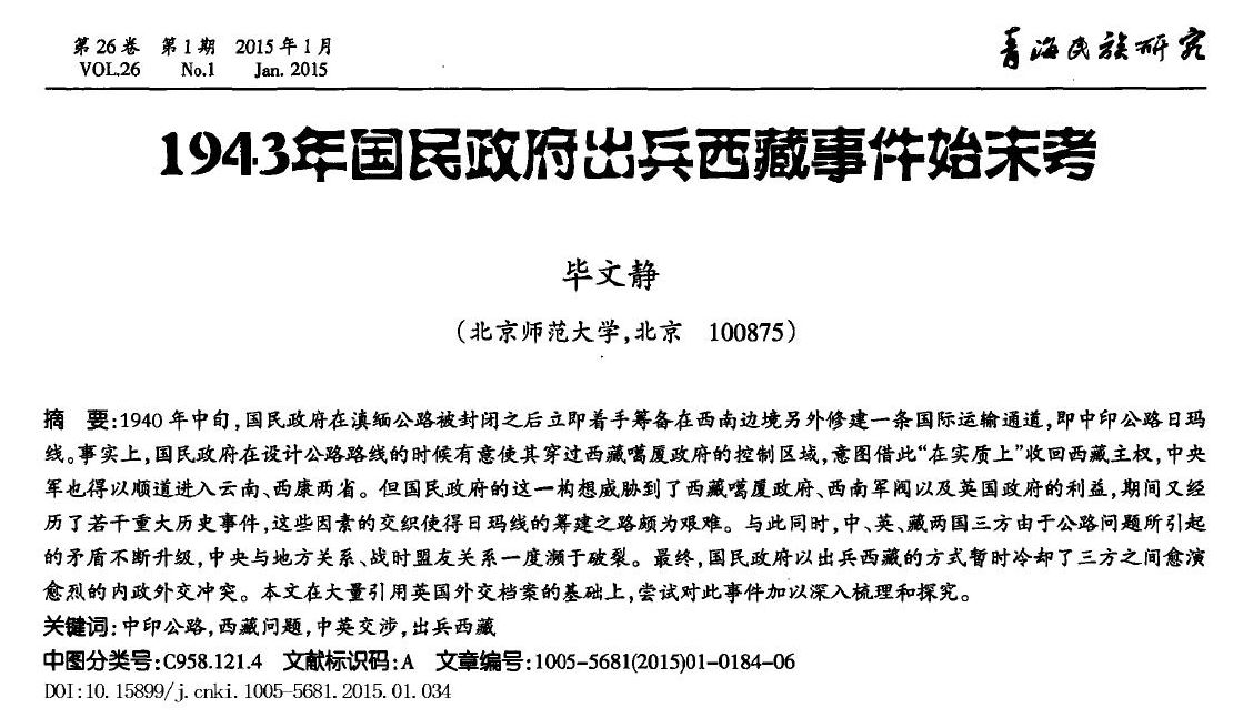 毕文静:1943年国民政府出兵西藏事件始末考