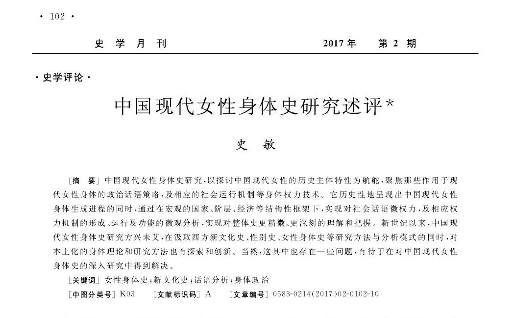 史敏:中国现代女性身体史研究述评