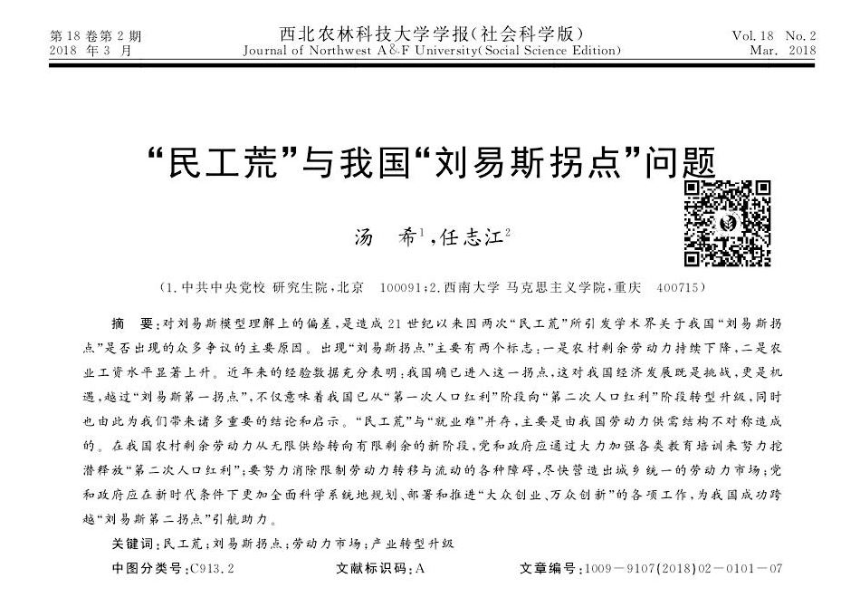 汤希、任志江:”民工荒“与我国”刘易斯拐点“问题