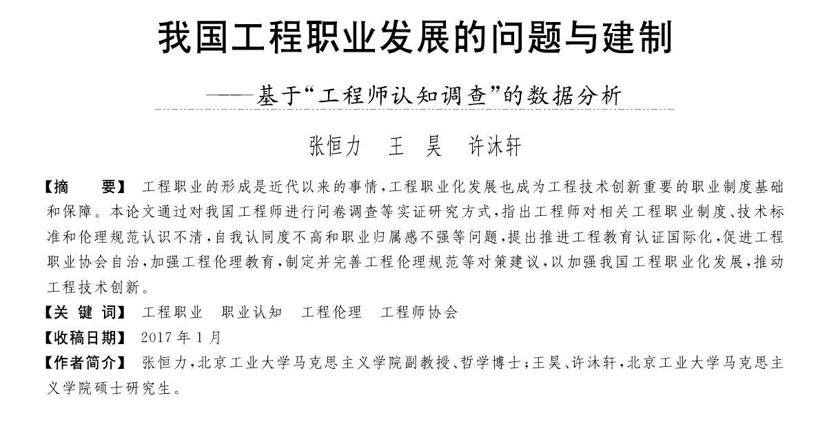 张恒力、王昊、许沐轩:我国工程职业发展的问题与建制——基于“工程师认知调查”的数据分析