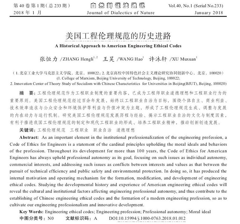 张恒力、许沐轩、王昊:美国工程伦理规范的历史进路