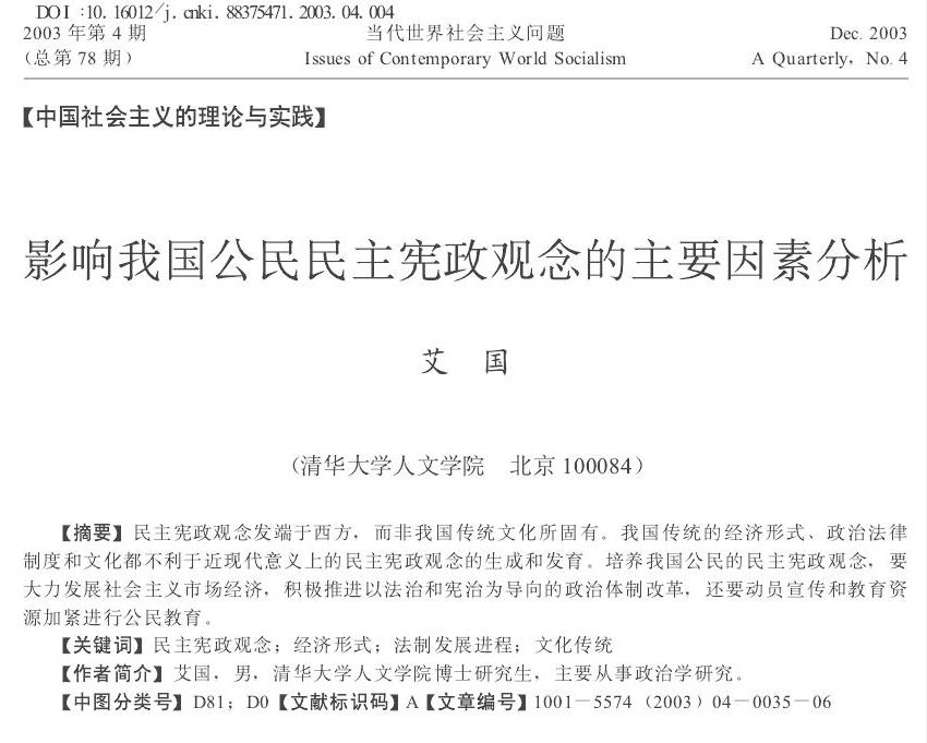 艾国:影响我国公民民主宪政观念的主要因素分析