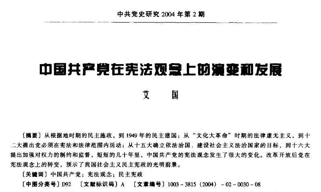 艾国:中国共产党在宪法观念上的演变和发展