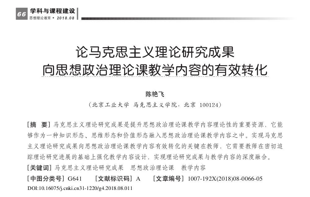 陈艳飞:论马克思主义理论研究成果向思想政治理论课教学内容的有效转化