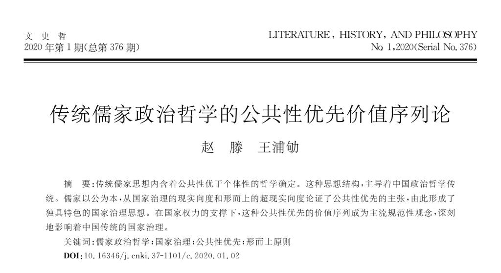 赵滕 王浦劬:传统儒家政治哲学的公共性优先价值序列论