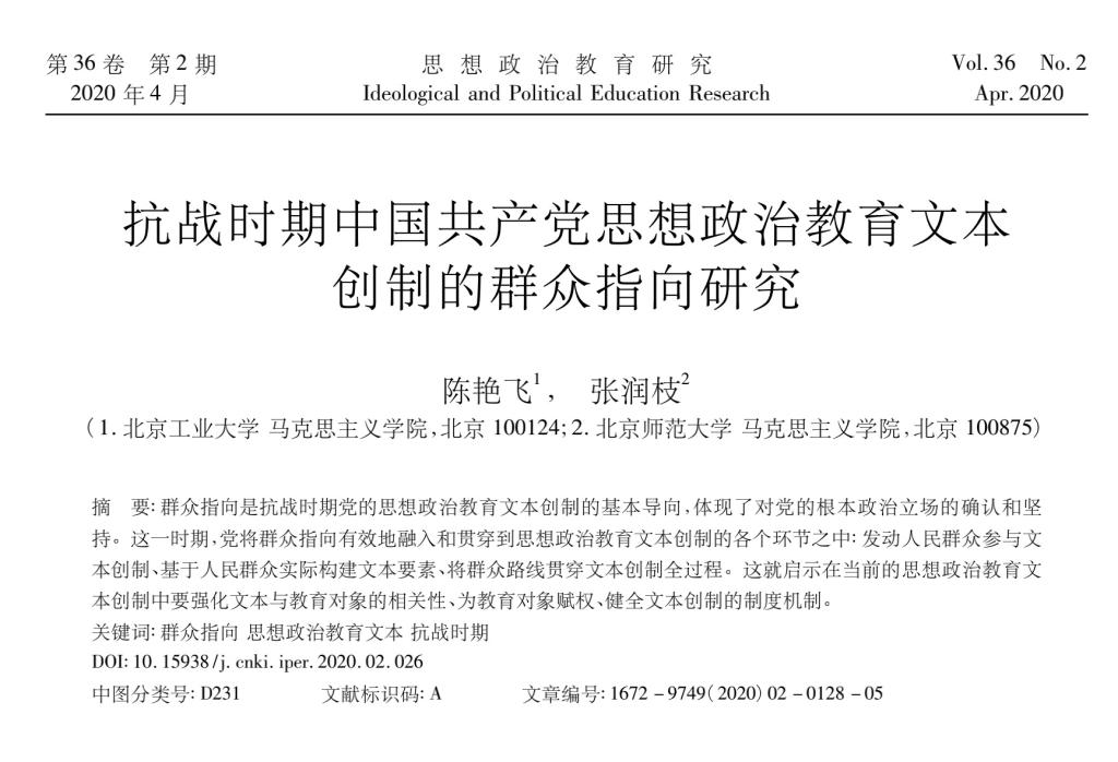 陈艳飞 张润枝:抗战时期中国共产党思想政治教育文本创制的群众指向研究
