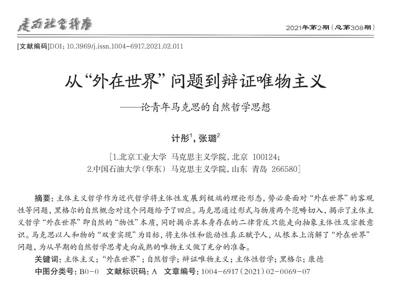 计彤 张璐:从“外在世界”问题到辩证唯物主义——论青年马克思的自然哲学思想