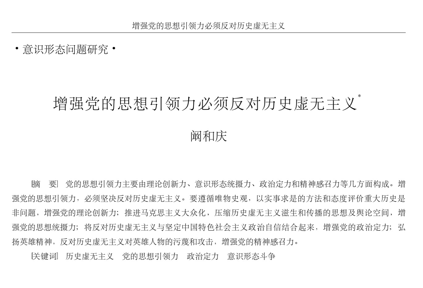 阚和庆:增强党的思想引领力必须反对历史虚无主义