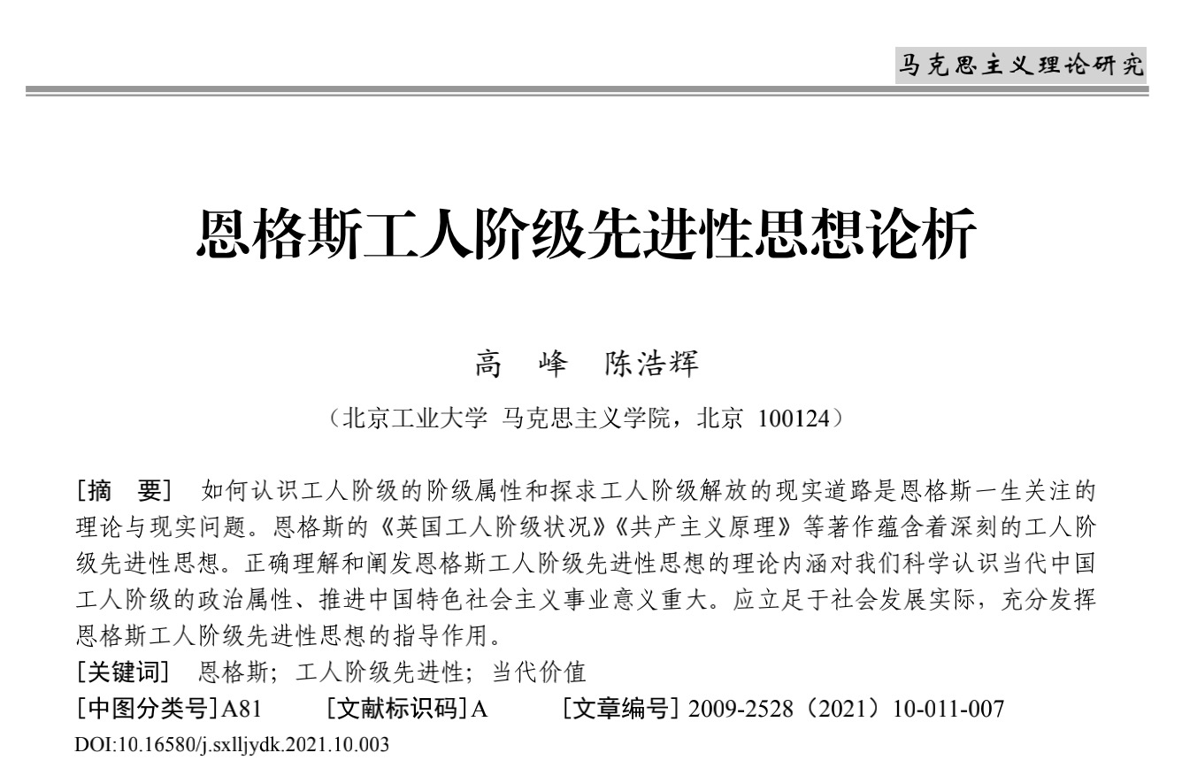 高峰 陈浩辉:恩格斯工人阶级先进性思想论析