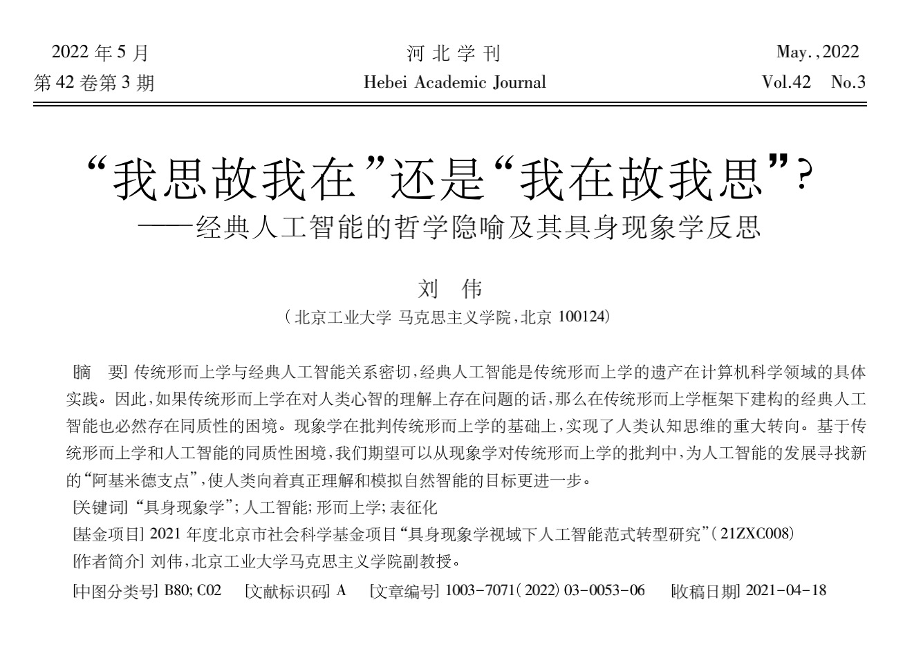 刘伟:“我思故我在”还是“我在故我思”?——经典人工智能的哲学隐喻及其具身现象学反思