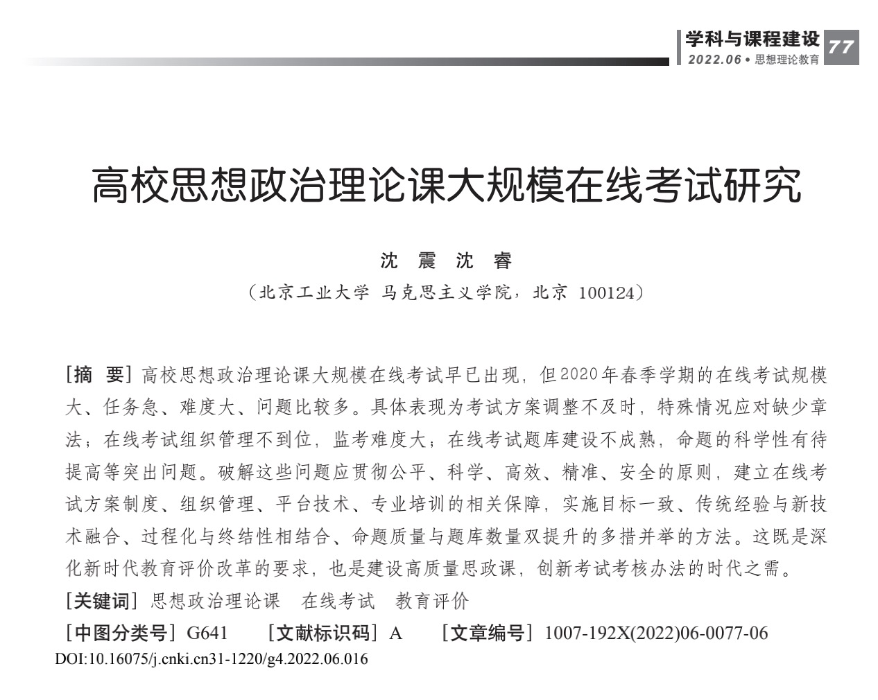 沈震 沈睿:高校思想政治理论课大规模在线考试研究