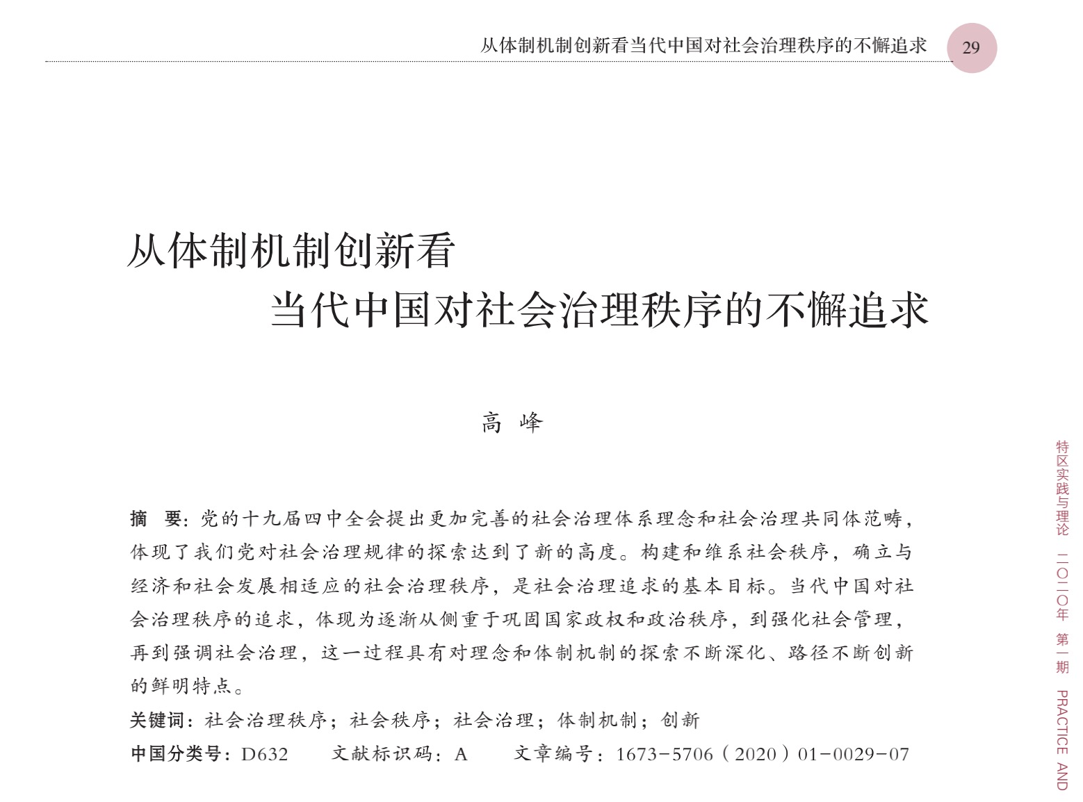 《特区实践与理论》2020年第1期