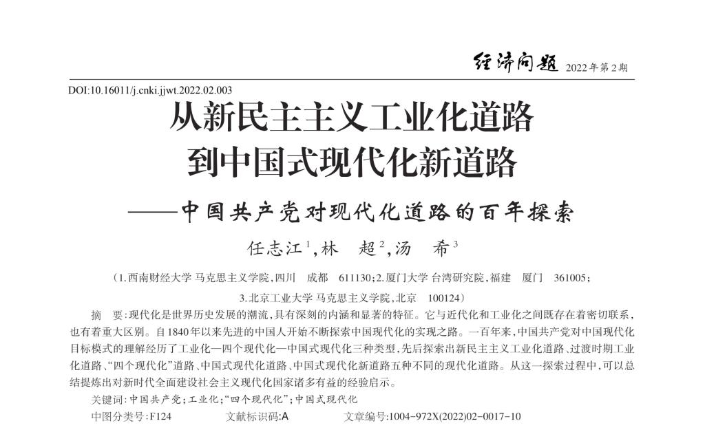 任志江 林超 汤希:从新民主主义工业化道路到中国式现代化新道路——中国共产党对现代化道路的百年探索