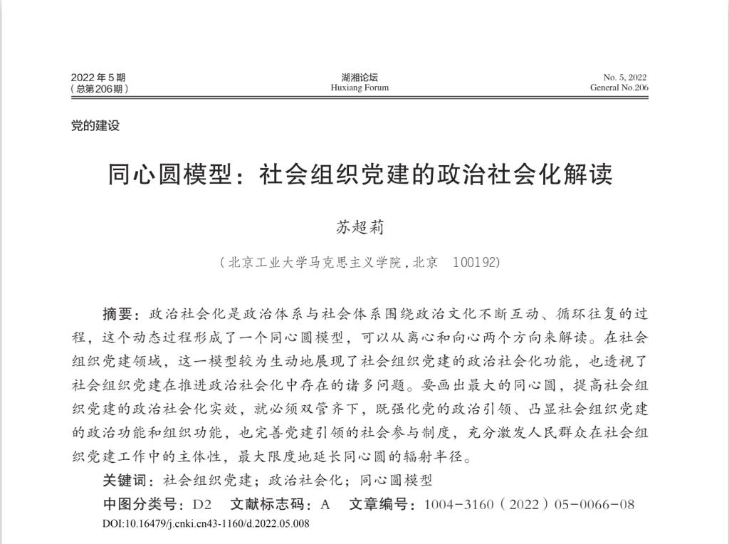 苏超莉:同心圆模型:社会组织党建的政治社会化解读
