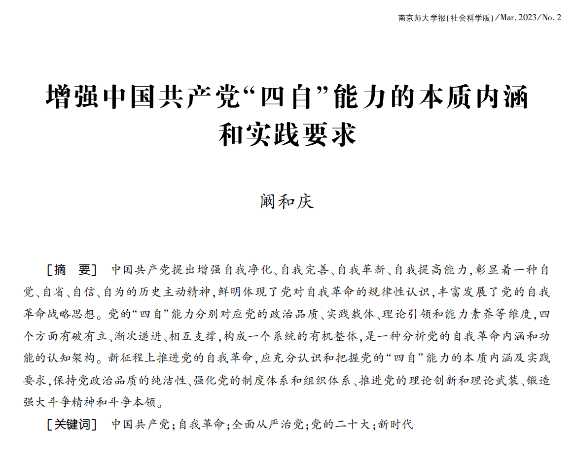 阚和庆:增强中国共产党“四自”能力的本质内涵和实践要求