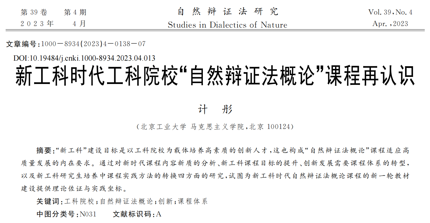 计彤:新工科时代工科院校“自然辩证法概论”课程再认识