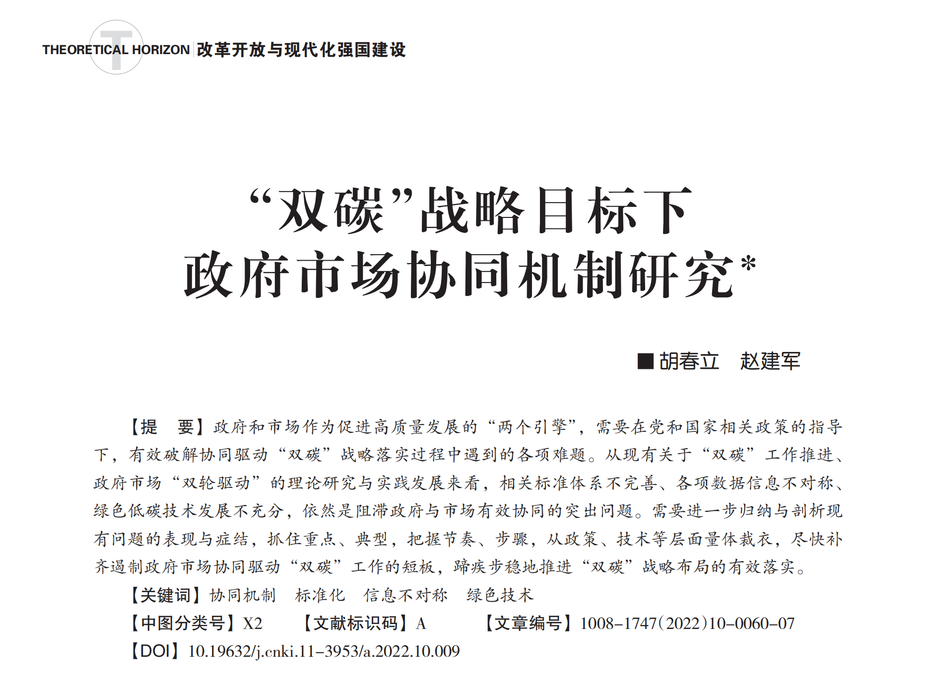 胡春立:“双碳”战略目标下政府市场协同机制研究