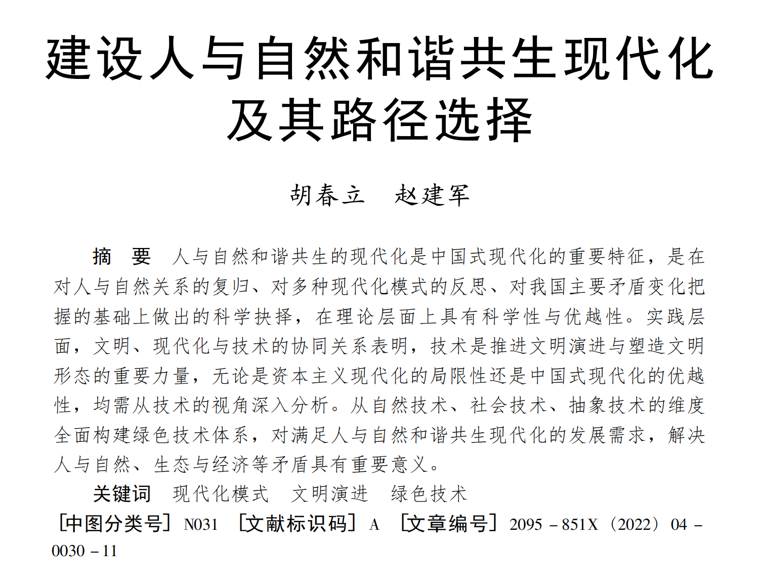 胡春立:建设人与自然和谐共生现代化及其路径选择