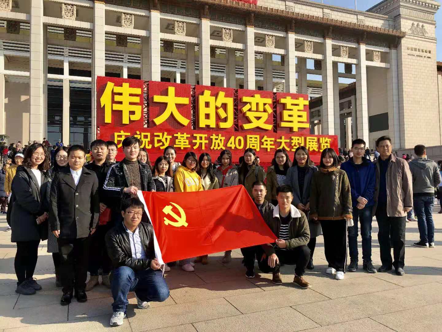 2018年11月17日,yl23411永利官网公司党总支组织公司全体党员教师和研究生赴国家博物馆参观“伟大的变革——庆祝改革开放40周年大型展览”。党总支书记、经理李东松老师、副经理丁云老师、副书记兼副经理高峰老师与公司师生50余人共同参观了展览。