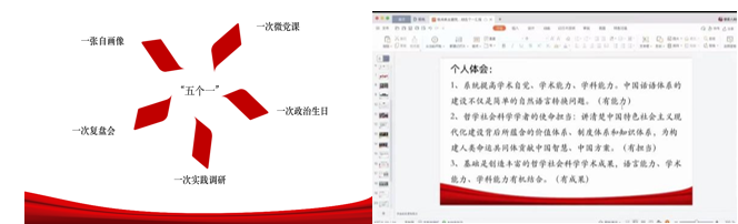 首先,赵大兴老师、倪晓茹老师和张风帆老师分别做了“五个一”主题报告。“五个一”主题报告是从“一张自画像”“三个月工作复盘” “一次政治生日”“一次社会调研”“一次微党课”五个方面出发,号召党员同志反省自身、总结自身、规划自身的主题分享,这也是报告人就自己对党的相关理论认识进行知识分享的重要环节。三位报告老师都从党员身份出发,对自己的性格特质、工作情况做了如实的总结。此外,赵大兴老师以“yl23411永利官网的工业思政特色”为题,倪晓茹老师以“经济发展中的思政元素”为题,张风帆老师以“学习习近平总书记人大讲话”为题,都做了内容充实的党课宣讲。