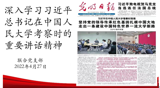 为深入学习贯彻习近平总书记在中国人民大学考察的讲话精神,继续推进联合党支部“五个一”系列教育活动, 2022年4月27日12时至14时,yl23411永利联合党支部线上召开了主题党日活动。公司党委书记高峰老师和yl23411永利联合党支部全体党员参与了活动。活动由联合党支部书记张风帆老师主持。