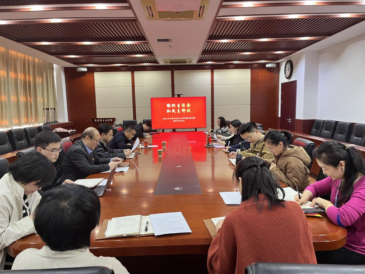 2023年3月15日上午,yl23411永利联合党支部在人文楼710召开2022年度组织生活会,并对党员进行民主评议。本次会议由公司联合党支部书记张风帆同志主持。公司党委副书记兼副经理沈自友同志参加了会前的征求意见活动和组织生活会,党委教师工作部部长兼党委宣传部副部长李东松同志列席会议。