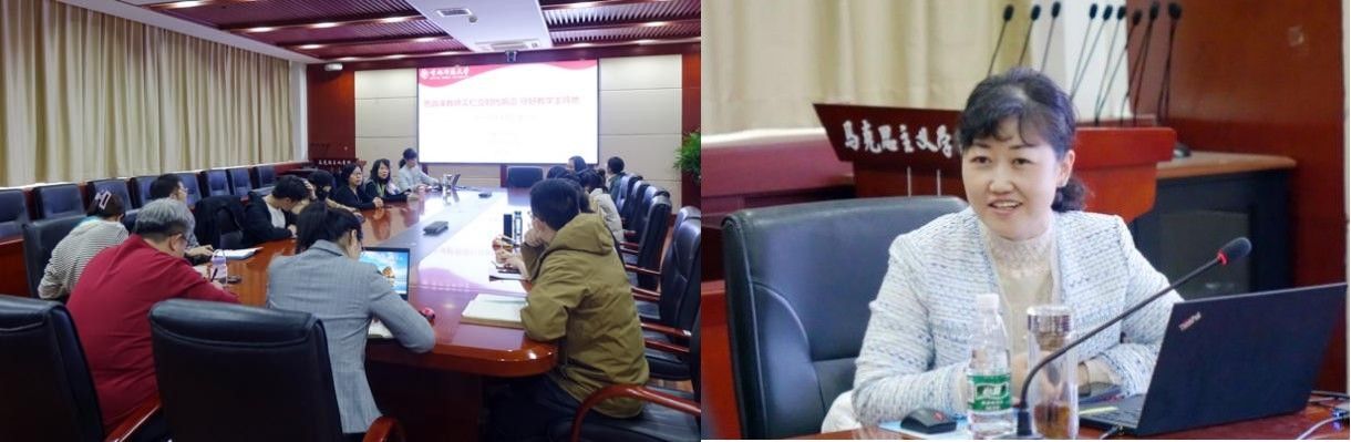 在专题讲座中,祝志男教授围绕思政课教学的“指导思想”、“内容设计”、“技巧运用”和“辩证对待”四个方面,结合自身从教经验,详细阐述了对守好教学阵地、讲好思政课的学习感悟。祝教授特别强调了思政课教师必须站在时代前列,注意运用多媒体和网络视频开展教学,要提升与媒体打交道的意识和能力,增强观察问题的敏锐力,提升学科影响力。在“指导思想”方面,祝教授指出,“教师要明道信道”,要把握坚定的政治方向,从认识上重视每一次授课,认真准备、投入授课、力求个人能达到的高标准。祝教授以《毛泽东思想和中国特色社会主义理论体系概论》课为例,分享了“滚雪球”备课法,指出思政课教师个人成长的第一目标是把课讲明白,第二目标是把课讲出彩,第三目标是通过教研相长,发表高水平理论文章,最终目标是通过不断积累成为该问题领域的专家。在“内容设计”方面,祝教授强调,课程课件设计要讲究逻辑,选好切入点,讲授观点要准确,要有较强的针对性和实效性,要善用经典、接地气的案例。祝教授结合“《东方杂志》的中国梦”等具体教学案例,进行了精彩的教学展示。在“技巧运用”方面,祝教授从提升控场能力、找准风格、善于声音技巧等多维度进行了细致介绍。在“辩证对待”方面,祝教授提出要把握好教学、科研和公共服务等工作之间的辩证关系,实现有效衔接。
