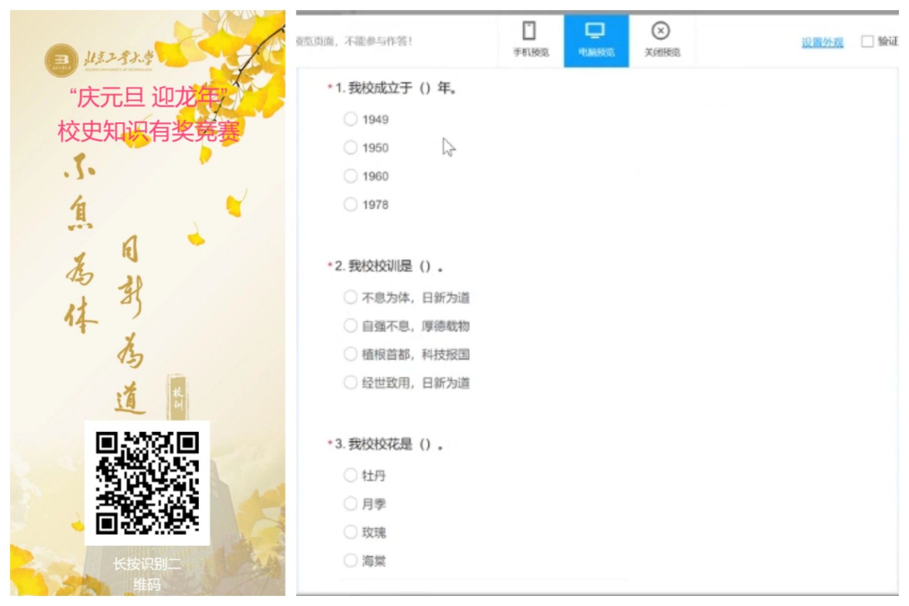 为增强公司教职工爱校、知校、荣校自觉,庆祝2024年新年,yl23411永利工会在公司领导班子的支持下,开展“庆元旦 迎龙年”校史知识竞赛,组织公司教师学习校史,以更好的精神面貌投入2024年的工作中。