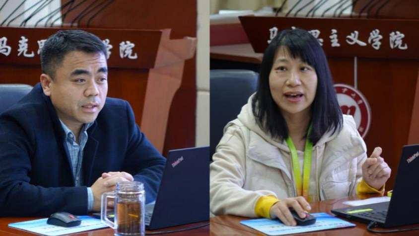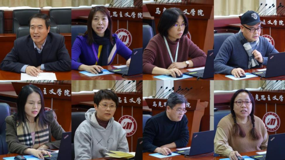 德育教研室负责人艾国、中国近现代史教研室负责人史敏、马克思主义原理教研室教师邢荣、中国特色社会主义教研室负责人彭宏伟、研究生思想政治理论课教研室负责人张风帆、形势与政策教研室支部书记张丽琴、习近平新时代中国特色社会主义思想概论教研室负责人阚和庆代表教研室做工作汇报,分别从教研室基本情况、教学科研情况、存在问题和改进提升等方面全面系统梳理了2023年度工作取得的成绩、存在的问题,并提出了2024年度工作计划。