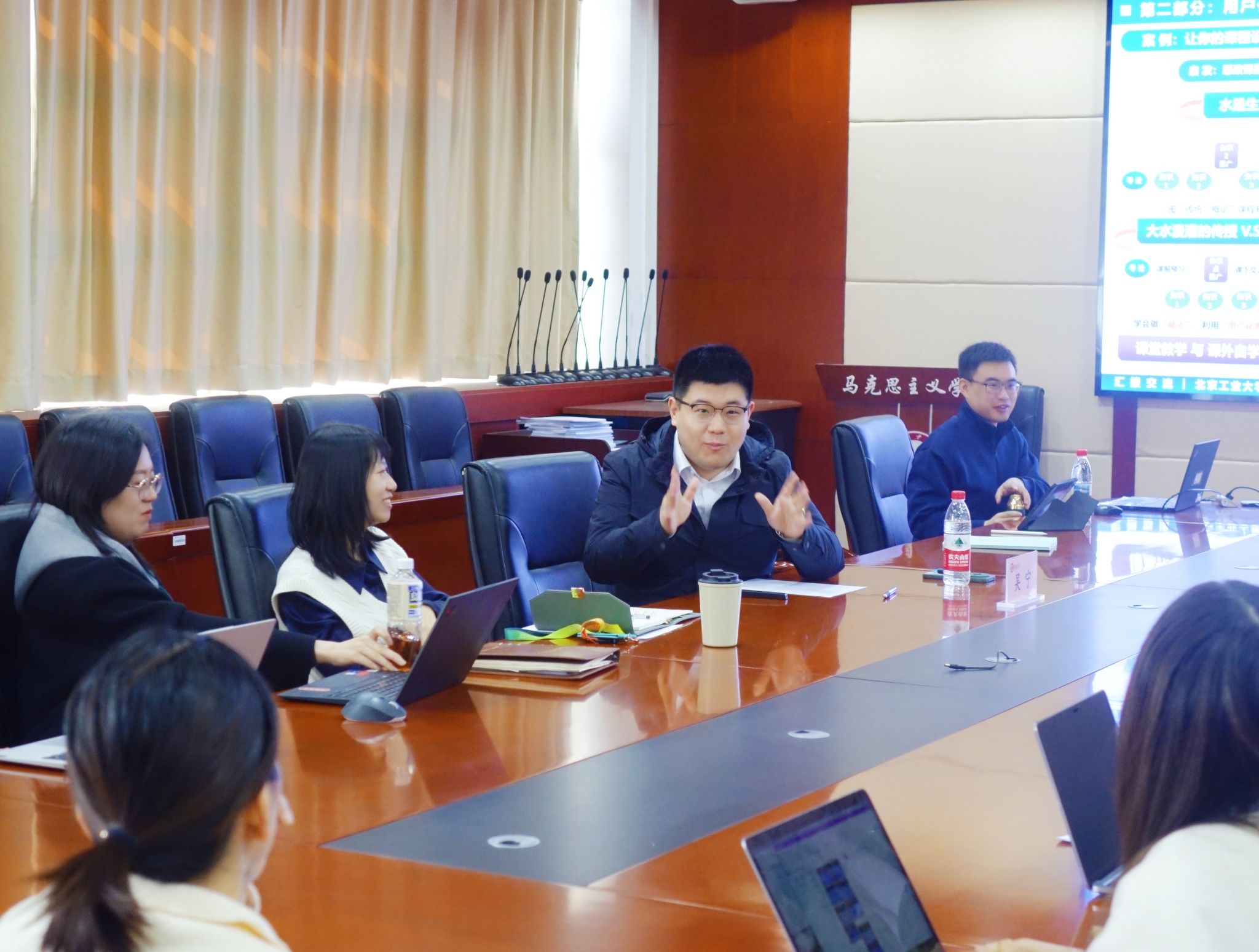 在互动交流环节,与会教师围绕智慧教学如何赋能思政课建设、提升课堂教学效果的技巧、思政课实践教学环节的有效组织、教学研究课题申报等问题与吴宁老师展开深入探讨。现场气氛热烈,思维碰撞不断,为青年教师创新教学设计、提升教学能力提供了新视角和新思路。