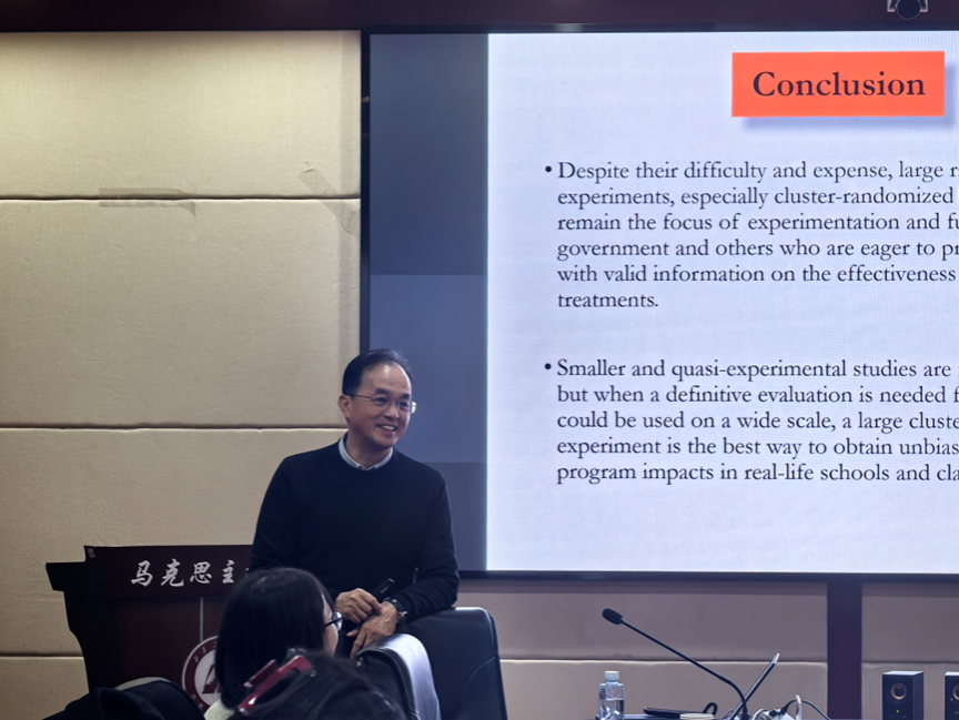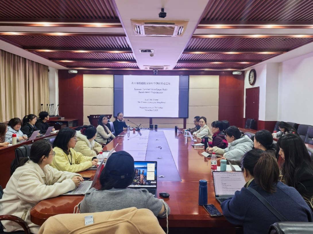 2025年11月9日,香港中文大学教育公司张志强教授受邀来高等教育研究院举办“Lessons Learned from Large-Scale Randomized Experiments” 专题讲座,聚焦探讨大规模随机研究这类评估所带来的益处、面临的挑战及潜在问题。本次讲座由高教院经理苏林琴主持,高教院师生30余人参加了此次讲座。