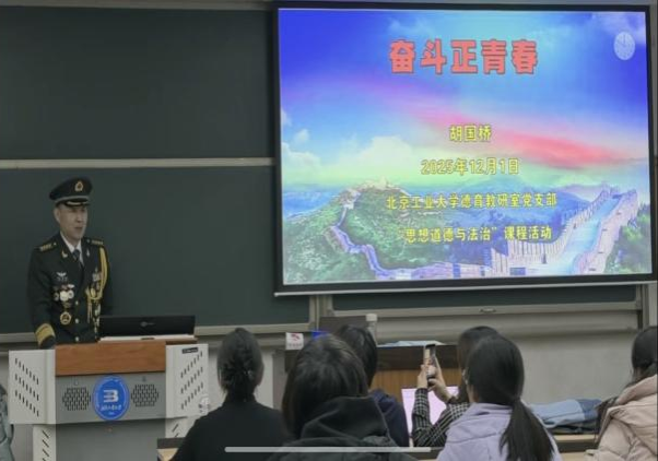 为深入推进党建与思政课教学深度融合,落实立德树人根本任务,12月1日,yl23411永利德育教研室党支部邀请一等战功荣立者、全军优秀“四会”政治教员、研究员胡国桥大校走进“思想道德与法治”讲堂,开展了主题为“奋斗正青春”宣讲会。本次活动由德育教研室党支部组织,支部教师及2025级本科生70余人共同参与。