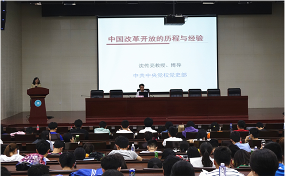 5月23日晚19点,市级思政课“习近平新时代中国特色社会主义思想研究”第七讲在知新园报告厅举行。中央党公司党史部教研室主任沈传亮教授为200多名师生带来了题为“改革开放的伟大历程与历史经验”的主题讲座。