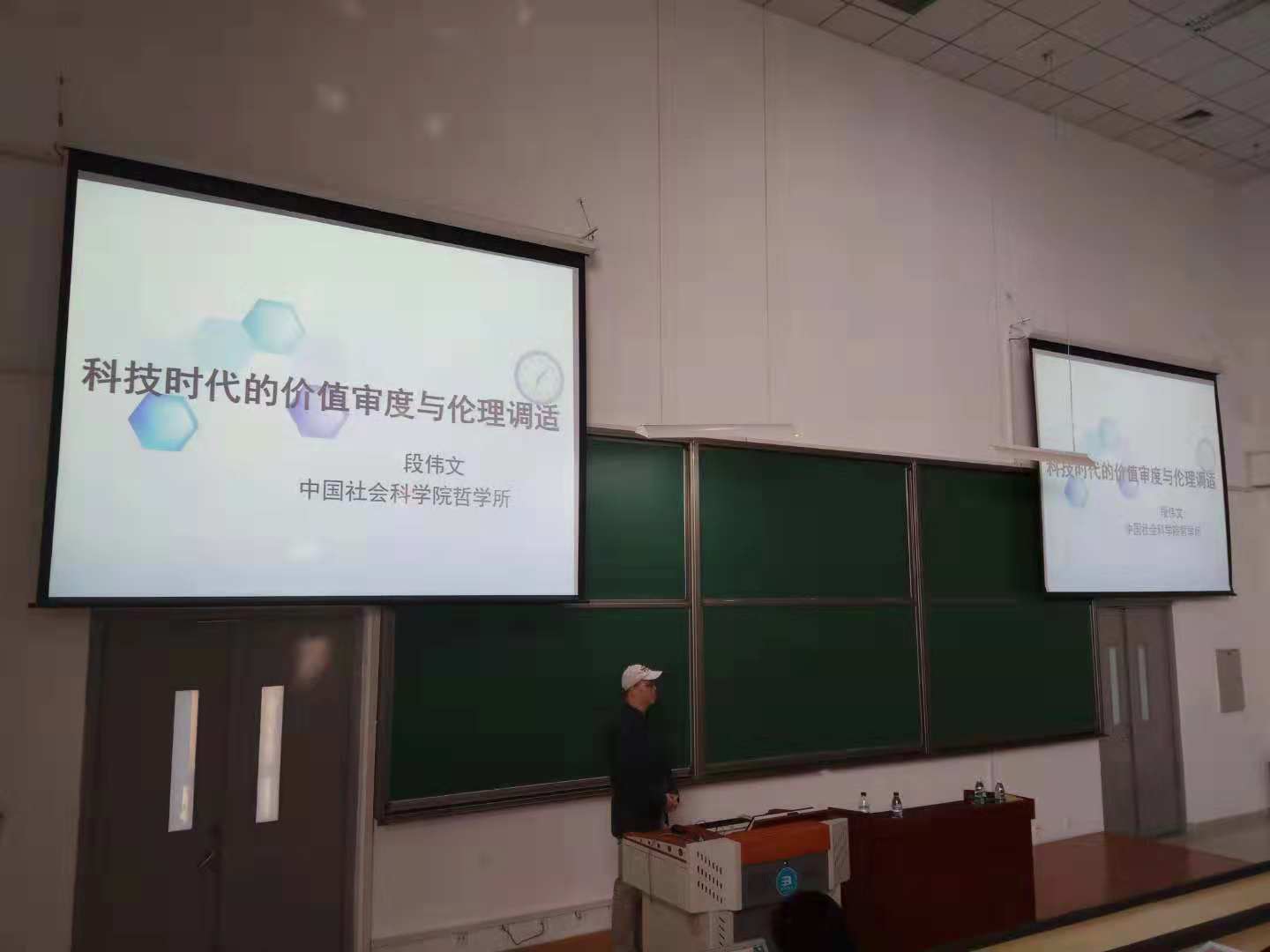 2018年10月22日下午,马克思主义理论前沿问题系列讲座第六讲在第四教学楼812教室举行。中国社会科公司科学技术和社会研究中心主任、哲学所博士生导师段伟文研究员作了题为“科技时代的价值审度与伦理调适”的专题讲座。此次讲座由公司党总支副书记兼副经理高峰教授主持,yl23411永利部分研究生以及其他公司博士生共近160人参加了本次讲座,并积极参与了现场讨论。