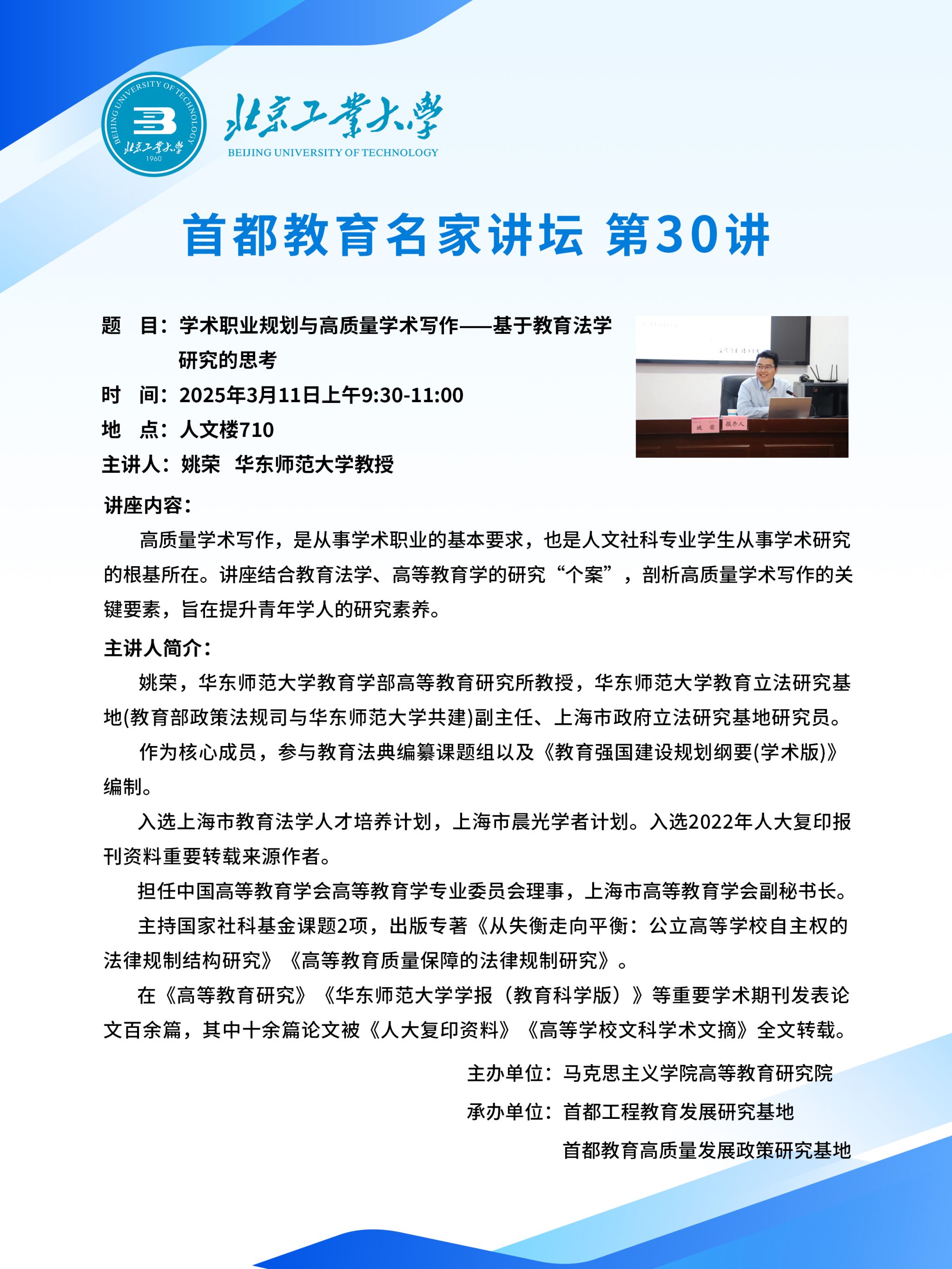 【公司 | 学术报告】首都教育名家讲坛 第30讲