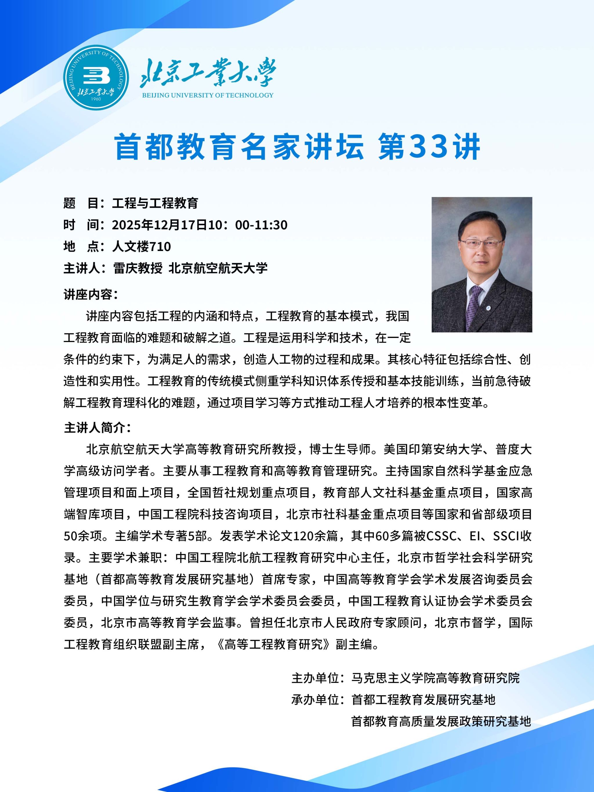 【公司 | 学术报告】首都教育名家讲坛 第33讲