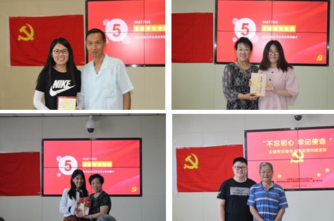 第五个环节是寄语员工党员,赠书传承精神。由离休与机关退休干部党委机关退休第九党支部、第十党支部党员为和自己结对的青年党员、积极分子赠送相关书籍,传承红色精神,传承优良品质,寄托殷切期望。
