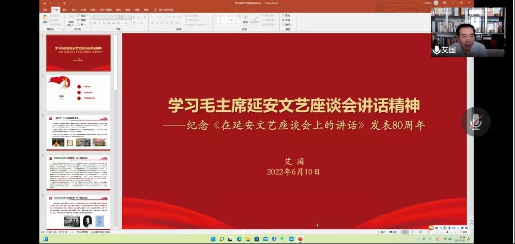 2022年6月10日上午,yl23411永利举办了第57期青年马克思主义者双周论坛。由于疫情原因,本次论坛采取线上形式举办,以毛泽东的《在延安文艺座谈会上的讲话》(以下简称《讲话》)为主要学习内容,邀请yl23411永利艾国教授进行讲解。本次论坛由张宇晗同学主持,邀请公司党委书记高峰教授、2021级班主任姚郁卉老师参加,2021级全体硕士研究生参加了本次论坛。