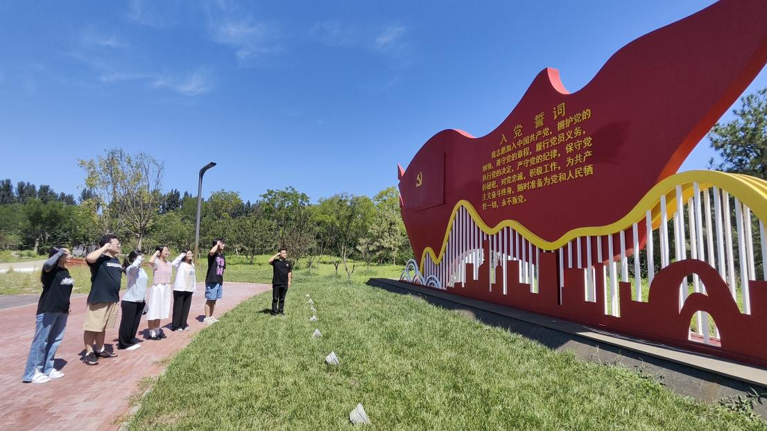 团队一行又来到党建公园,该公园已经成为潞城镇的红色地标,依托于优美的自然环境,展示了强大的红色主题文化,打造了“一条红色文化”的百年奋斗之路,向所有参观者展示了中国共产党百年的发展历程、北京副中心的建设历程及第二个百年奋斗目标。走过这条红色文化路,团队成员再次回顾了中国共产党从“一大南湖红船”一路走向“新时代”波澜壮阔的历程和艰苦卓绝的岁月,再现了中国共产党发展历程中重要节点、重大事件。同时也见证了潞城镇从棚户区到城市副中心的巨变和建设成就。大家深刻地体会到只有中国共产党才能救中国,只有中国共产党才能发展中国,只有中国共产党才能强盛中国。面向党旗,全体党员重温了入党誓词,并现场分享了参观的体会。